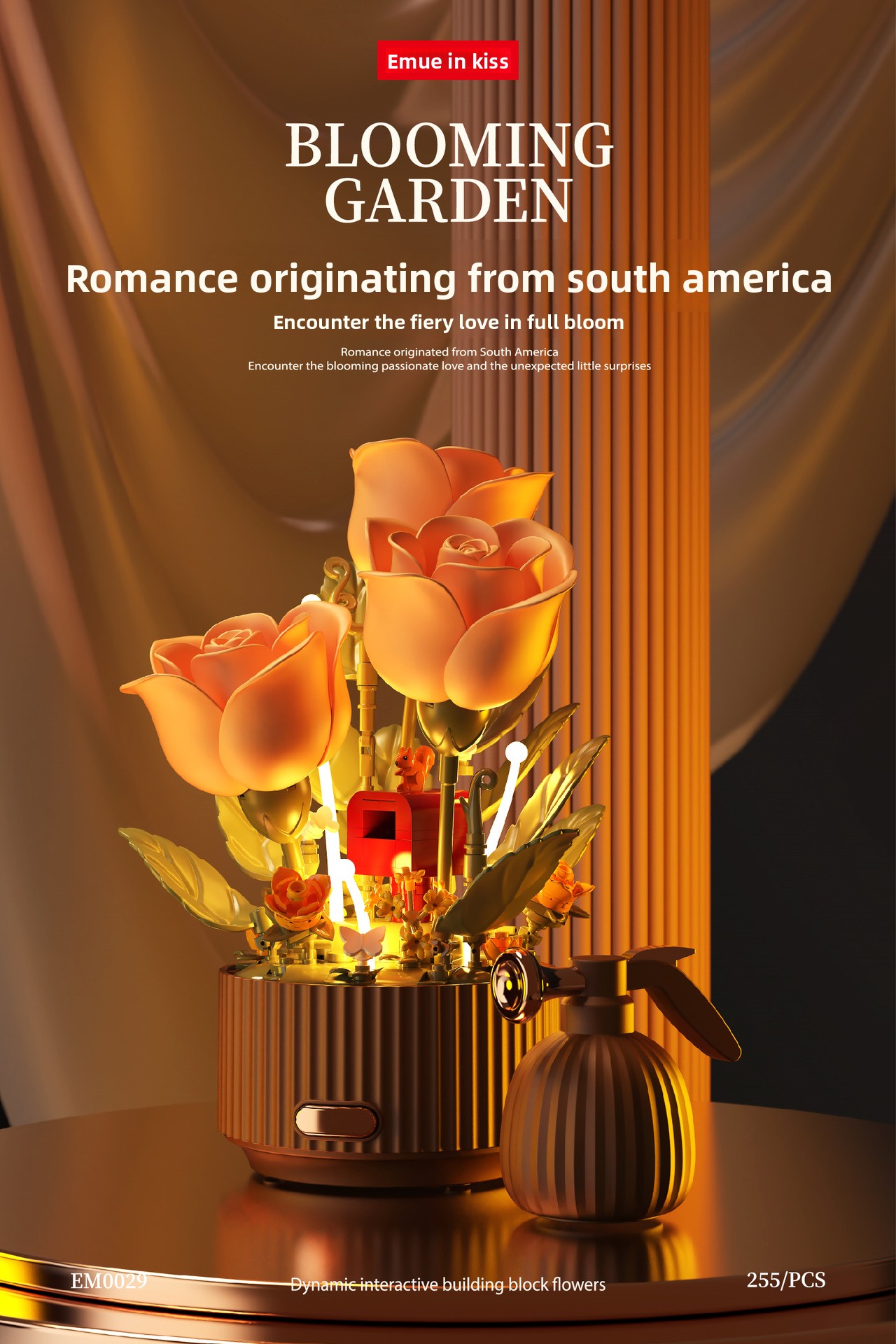Dynamic Blooming Feature: Unique building block flowers that mechanically bloom, creating an interactive and
